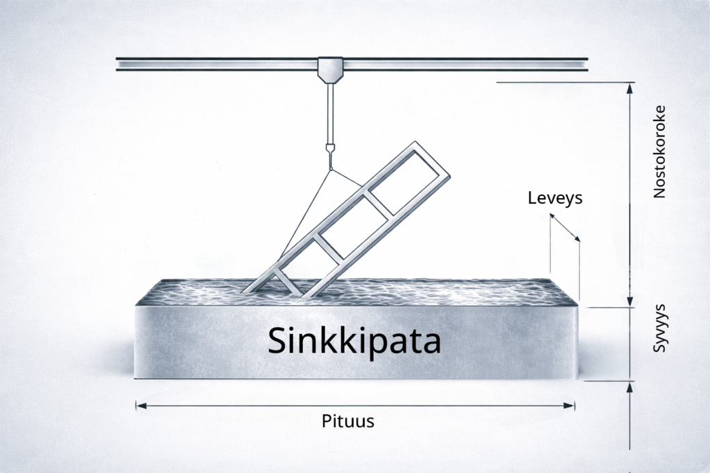 Kappaleen nosto tapahtuu vinossa asennossa, jotta sinkki valuisi tasaisesti pois.