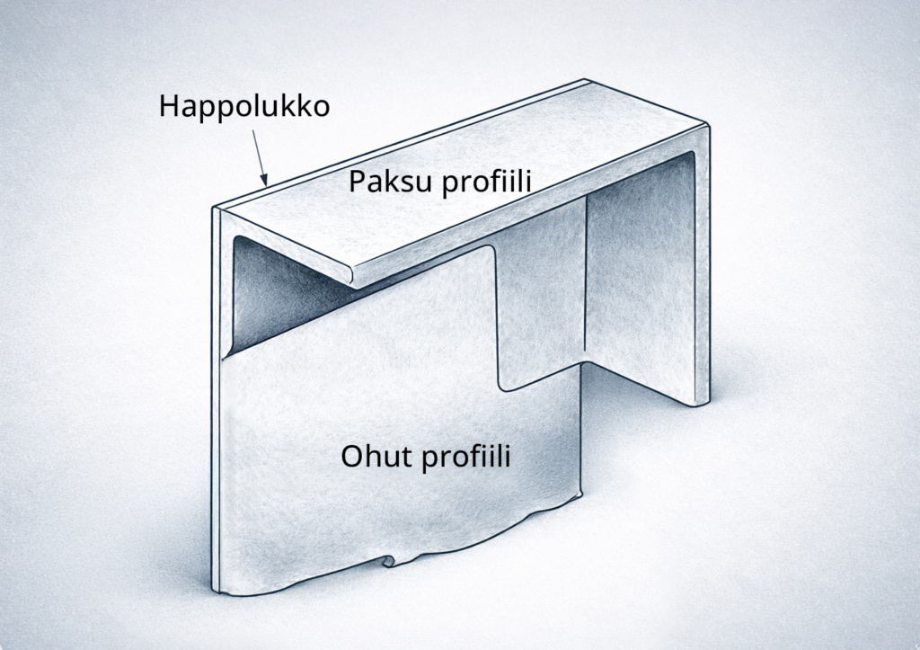 Vältä eri pinnanlaatujen ja materiaalityyppien yhdistelmiä