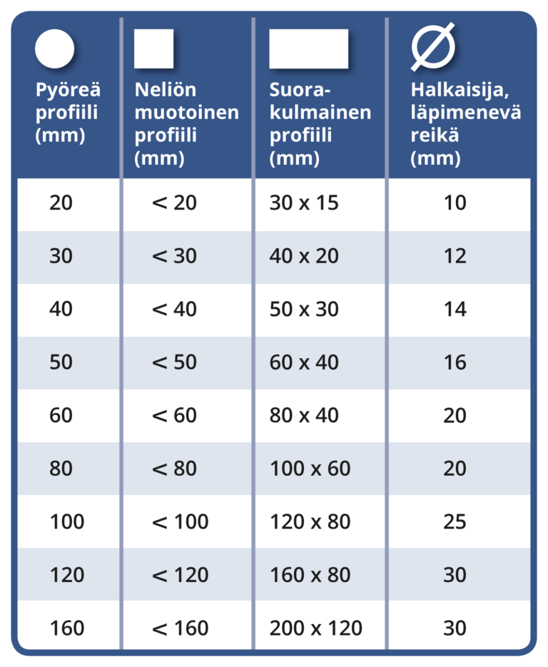 Aukkojen koot on esitetty taulukossa 1. Aukot tulee sijoittaa niin, että tuuletus on täydellinen ja sekä peittaushappo että sinkki valuvat helposti sisään ja ulos.